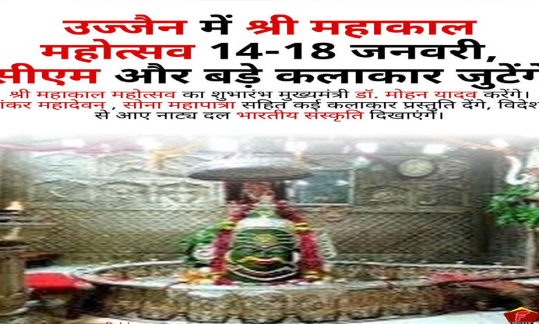 बाबा महाकाल की नगरी में 14 से 18 जनवरी तक सांस्कृतिक समागम, शिव-भक्ति और वैश्विक कलाकारों के संगम का केंद्र बनेगी। श्रीमहाकाल महोत्सव देश और दुनिया में उज्जैन की सांस्कृतिक पहचान को नई ऊंचाई देगा और लोक एवं शास्त्रीय कला के बीच अनूठा संवाद स्थापित करेगा। इसका शुभारंभ मुख्यमंत्री डॉ. मोहन यादव करेंगे। पहले दिन पार्श्व गायक शंकर महादेवन (Singer Shankar Mahadevan) अपने बेटों सिद्धार्थ और शिवम् के साथ प्रस्तुति देंगे।