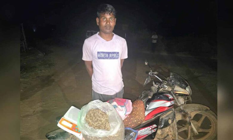 महाराष्ट्र से मोटरसाइकिल पर गांजा ला रहा तस्कर गिरफ्तार, गांव ले जाते समय पुलिस ने दबोचा