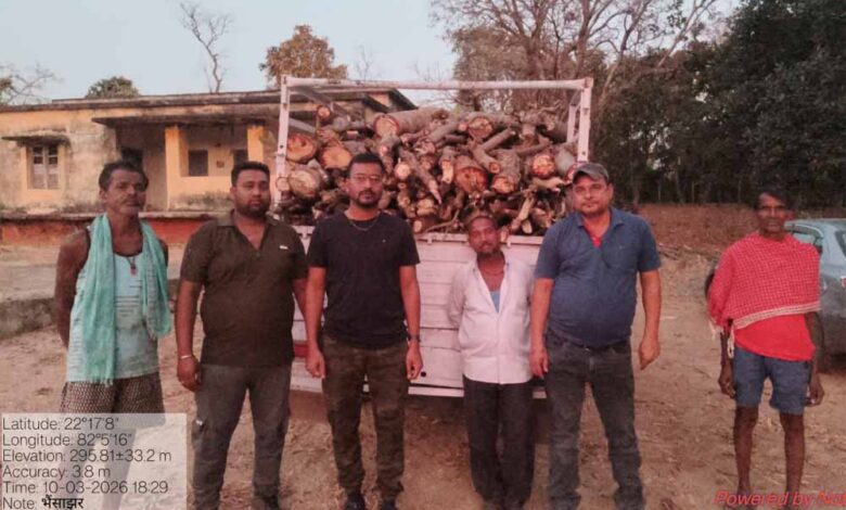 छत्तीसगढ़ राज्य वन विकास निगम के प्रबंध संचालक के निर्देशानुसार वन क्षेत्रों में वनों की अवैध कटाई, अतिक्रमण और अवैध उत्खनन को रोकने के लिए सभी परियोजना मंडलों में नियमित गश्त की जा रही है। इसी क्रम में कोटा परियोजना मंडल, बिलासपुर की टीम ने गश्ती के दौरान अवैध लकड़ी परिवहन पर कार्रवाई की। परिक्षेत्र भैंसाझार के कक्ष क्रमांक पी-1604 में पलाश प्रजाति की 02 नग जलाऊ चट्टा लकड़ी को महिंद्रा पिकअप वाहन से अवैध रूप से ले जाया जा रहा था। वन विभाग की टीम ने वाहन को पकड़कर पिकअप वाहन क्रमांक सीजी-05 एबी- 8843 को जप्त कर लिया।
