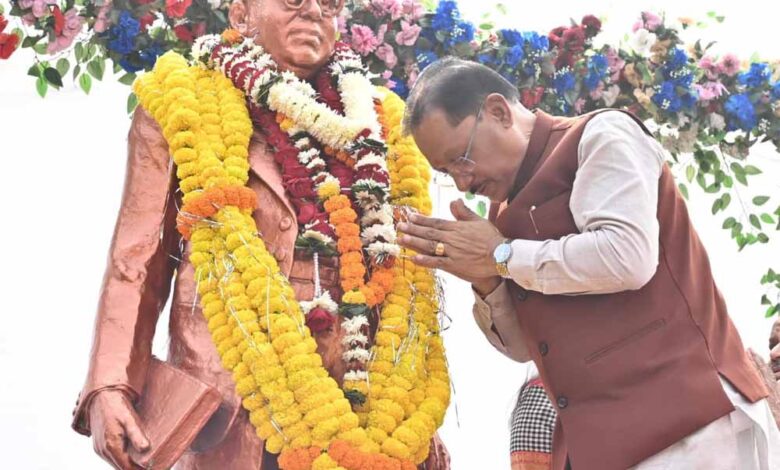 मुख्यमंत्री विष्णुदेव साय ने संविधान दिवस के अवसर पर डॉ. भीमराव अंबेडकर की प्रतिमा पर माल्यार्पण कर किया नमन