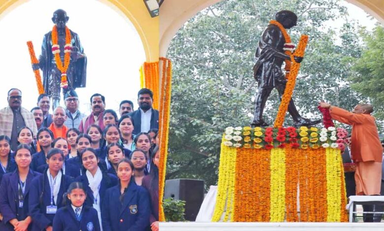 मुख्यमंत्री ने लखनऊ के जीपीओ पार्क में गांधी प्रतिमा पर किया माल्यार्पण