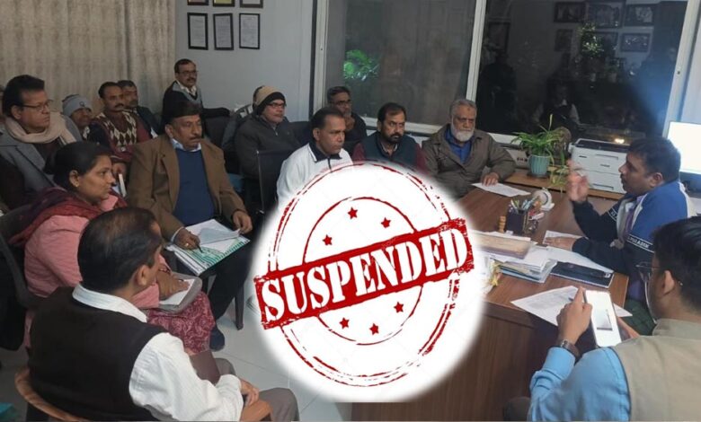 कलेक्टर रविवार रात SIR कार्य की समीक्षा कर रहे थे, जिसमें सामने आया कि विधानसभा क्षेत्र उत्तर के मतदान केंद्र दो के BLO अनंतलाल मिश्रा की ओर से लगातार निर्देश देने के बाद भी एक भी गणना पत्रक BLO एप पर डिजिटाईज नहीं किया गया है। इसी तरह विधानसभा क्षेत्र गोविंदपुरा के BLO सुपरवाईजर शुभम प्रताप सिंह ने लक्ष्य के अनुरूप बीएलओ से कार्य नहीं करवाया और प्रत्येक बीएलओ से प्रतिदिन 100 गणना पत्रक बीएलओ एप पर डिजिटाईज नहीं करवाया गया है।इस तरह अनंत लाल मिश्रा और शुभम प्रताप सिंह द्वारा SIR कार्य में लगातार लापरवाही बरतने पर निलंबित किया जाता है।