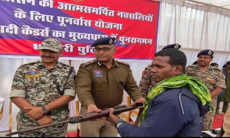 जिले में नक्सल उन्मूलन अभियान को आज एक बड़ी और निर्णायक सफलता मिली है। आईजी अमरेश मिश्रा और धमतरी एसपी सूरज सिंह परिहार के समक्ष आज एक साथ 9 सक्रिय हार्डकोर नक्सलियों ने आत्मसमर्पण किया है। आत्मसमर्पण करने वालों में 05 महिला और 04 पुरुष नक्सली शामिल हैं। ये सभी लंबे समय से सीतानदी क्षेत्र सहित नगरी, मैनपुर और गोबरा इलाकों में सक्रिय थे और कई घटनाओं में शामिल रहे हैं।