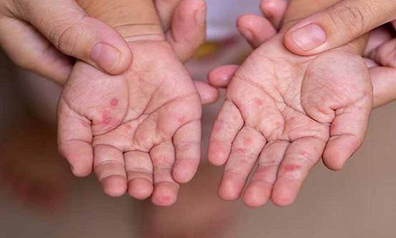 •     तेज बुखार, खांसी और शरीर पर लाल चकत्ते।