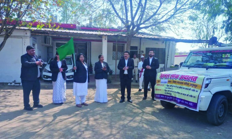 आमजन को त्वरित, सुलभ एवं किफायती न्याय उपलब्ध कराने के उद्देश्य से 14 मार्च 2026 को जिला न्यायालय परिसर अनूपपुर में राष्ट्रीय लोक अदालत का आयोजन किया जाएगा। इसके व्यापक प्रचार-प्रसार एवं जनजागरूकता के लिए जिला न्यायालय परिसर से जागरूकता रथ (प्रचार वाहन) को हरी झंडी दिखाकर रवाना किया गया।