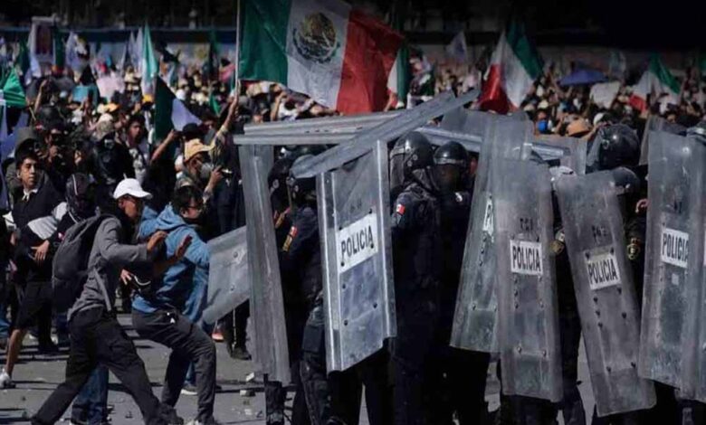 प्रदर्शन तेज होने के बाद हिंसक मोड़ भी लिया। प्रदर्शनकारियों ने पत्थर, डंडे और चेन के सहारे पुलिस पर हमला किया। मेक्सिको सिटी के सुरक्षा सचिव पाब्लो वैजेक के अनुसार, इस झड़प में लगभग 120 लोग घायल हुए, जिनमें 100 पुलिसकर्मी शामिल हैं। इस हिंसा में 20 लोगों को गिरफ्तार भी किया गया। एक 29 वर्षीय व्यवसायी ने कहा कि उन्हें अधिक सुरक्षा की आवश्यकता महसूस हो रही है। वहीं, एक 43 वर्षीय महिला फिजिशियन ने प्रदर्शन में शामिल होकर सार्वजनिक स्वास्थ्य प्रणाली के लिए अधिक फंड की मांग की। उन्होंने कहा कि आज डॉक्टरों को मार दिया जाता है और इसके लिए कोई जवाबदेही नहीं होती।