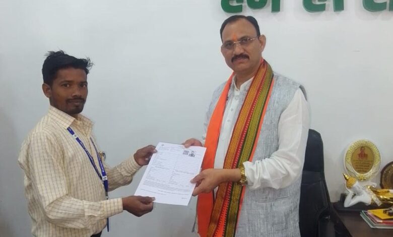 रायपुर : स्वास्थ्य मंत्री  श्याम बिहारी जायसवाल को बीएलओ ने सौंपा ईएफ फॉर्म