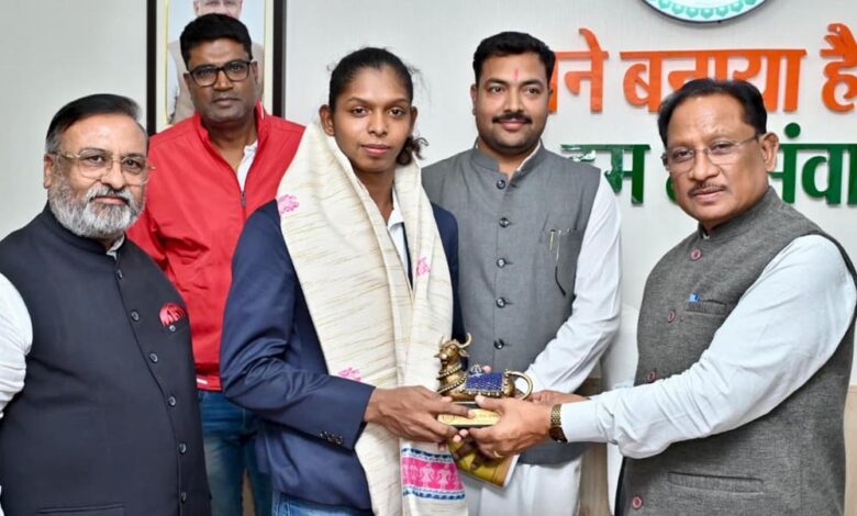 मुख्यमंत्री  साय ने विश्व कप में उत्कृष्ट प्रदर्शन कर छत्तीसगढ़ और देश का नाम रोशन करने पर संजू देवी को हार्दिक बधाई एवं शुभकामनाएं दीं। उन्होंने कहा कि “आपने महिला सशक्तिकरण की एक नई मिसाल पेश की है। आपको देखकर प्रदेश की बेटियाँ खेल जगत में और अधिक उत्साह के साथ आगे बढ़ेंगी। यह उपलब्धि निस्संदेह आने वाली पीढ़ियों की खेल प्रतिभा को निखारने में प्रेरक साबित होगी।”मुलाकात के दौरान संजू देवी ने भी अपनी जीवन यात्रा, संघर्ष, और खेल से जुड़े अनुभव मुख्यमंत्री  साय के साथ साझा किए।