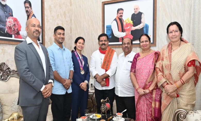 रायपुर : उपमुख्यमंत्री विजय शर्मा मिले वर्ल्ड कप विजेता भारतीय महिला क्रिकेट टीम की फिजियोथेरेपिस्ट आकांक्षा सत्यवंशी से, दी शुभकामनाएं