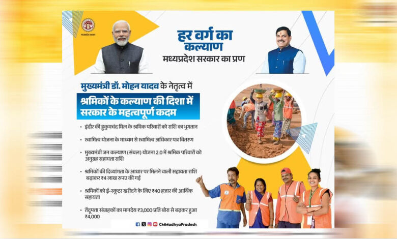 श्रमिकों के कल्याण के लिये मध्यप्रदेश में दो वर्षों में हुए उल्लेखनीय कार्य