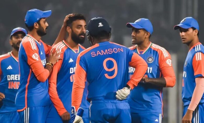 वेस्टइंडीज के ख‍िलाफ भारत की संभाव‍ित प्लेइंग 11: संजू सैमसन (विकेटकीपर), अभिषेक शर्मा, ईशान किशन, सूर्यकुमार यादव, हार्दिक पंड्या, तिलक वर्मा, शिवम दुबे, अक्षर पटेल, अर्शदीप सिंह, जसप्रीत बुमराह और वरुण चक्रवर्ती.