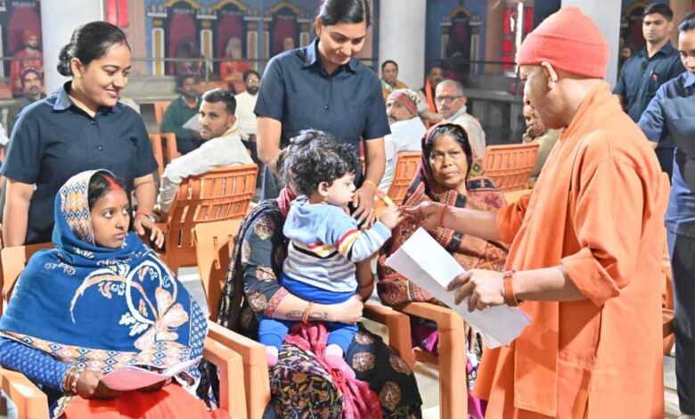 मुख्यमंत्री योगी आदित्यनाथ ने गोरखपुर प्रवास के दौरान सोमवार सुबह गोरखनाथ मंदिर में आयोजित जनता दर्शन में लोगों से मुलाकात कर उनकी समस्याएं सुनीं। इस दौरान उन्होंने जरूरतमंदों को आवास दिलाने, आर्थिक रूप से कमजोर परिवार की बेटियों की शादी और गंभीर बीमारियों से पीड़ितों के उपचार में आर्थिक सहायता देने का आत्मीय संबल दिया। उन्होंने कहा कि सरकार हर जरूरतमंद और पात्र व्यक्ति को कल्याणकारी योजनाओं का लाभ दिलाने तथा हर समस्या के प्रभावी निस्तारण के लिए संकल्पित है। जनता दर्शन में लोगों की समस्याएं सुनते हुए मुख्यमंत्री ने अधिकारियों को निर्देशित किया कि वे जन समस्याओं पर त्वरित संवेदनशीलता दिखाएं और पारदर्शिता के साथ निस्तारण सुनिश्चित करें।