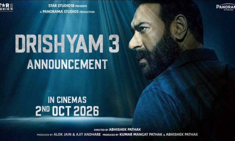 बता दें कि अजय देवगन की ब्लॉकबस्टर फ्रैंचाइजी ‘दृश्यम’ का पहला पार्ट साल 2015 में आया था. इसके बाद ‘दृश्यम 2’ साल 2022 में रिलीज हुई थी. वहीं, अब 2 अक्टूबर 2026 को फिल्म ‘दृश्यम 3’ रिलीज होने वाली है.